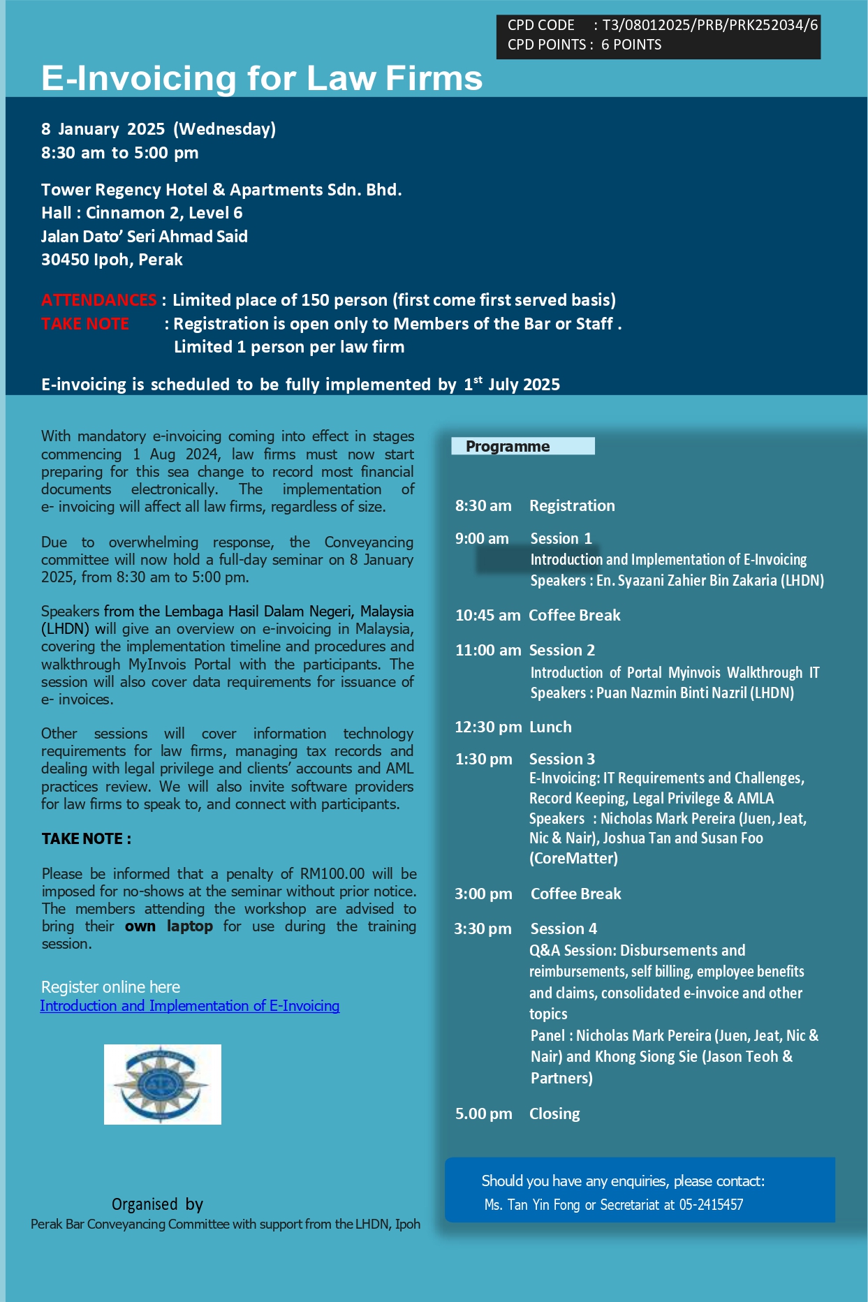 • [UPDATE] RE: PARKING ARRANGEMENTS FOR THE PERAK BAR LAW CONFERENCE 2025 @ 11th OCTOBER 2025 (SATURDAY)